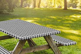 - Picnic table covers have different designs and colors that add a decorative aspect to the outdoor arrangement.